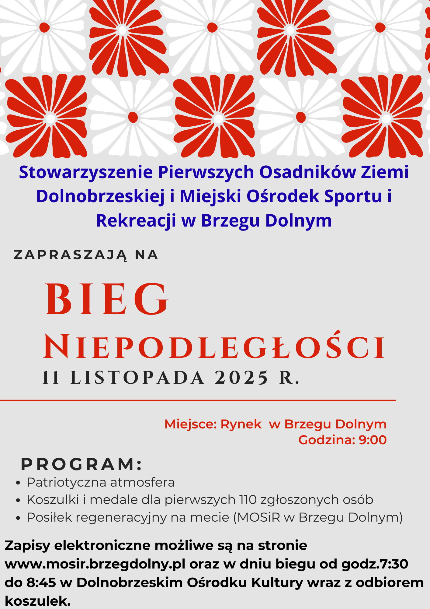 - 110 medali będzie wręczane zgodnie z kolejnością zameldowania się uczestnika na mecie przy MOSiR;